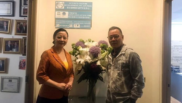 聯(lián)合國教科文組織紐約協(xié)會主席李依凌(左)和張志君(右) 在聯(lián)合國總部合影
