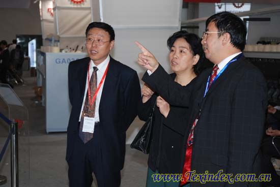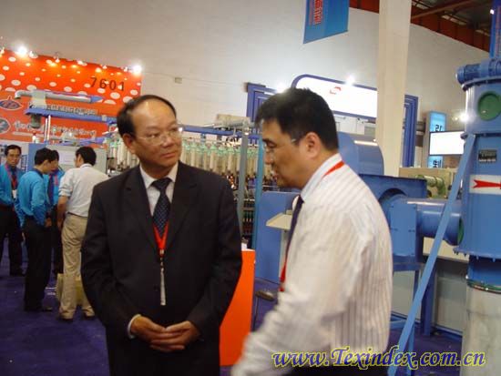 國家科技部高新技術與產業化司先進制造與自動化處蔡文沁處長在中國紡織機械器材工業協會祝憲民副理事長陪同下參觀展會