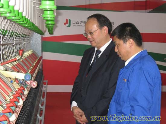 中國紡織機械器材工業協會理事長高勇參觀山西滬晉紡織機械有限公司展機