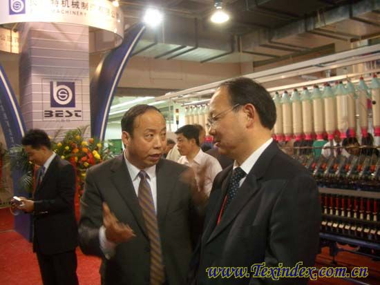 中國紡織機械器材工業協會秘書長王樹田陪同中國紡織工業協會副會長許坤元參觀展會