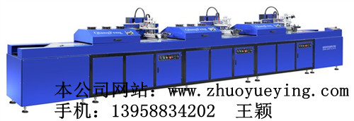 全自動環形印花機 更多產品請登錄:www.zhuoyueying.com 我公司十年磨一劍在創精品經過多次改進,滿足多種需求!此機對位精準、快速對版、人機結合、獨立控制系統、隆重推出【自動多色環形絲網印花機】 多色自動環形絲網印花機產品簡介: 本機采用集中控制系統,人機界面、操作簡潔,刮刀由電控運行更準確平穩,提高印花的清晰度和質量。刮刀行程與角度調節便捷,,每把刮刀的工作壓力都可單獨調節。該機采用機、電、氣一體化自動控制,運用絲網印刷原理,使產品墨層飽滿豐厚、色牢度高、遮蓋力強、套色精準。整機由PLC控制系統,工作區域與印刷頭工作程序可由用戶選擇組合使用,印刷頭之間都配備紅外線烘干機,大大增加工作效率。 擴展性: 特有的并行模塊組合設計,可根據用戶的要求在原有的機器上任意添加印刷頭,(比如現在是一臺3色機,因用戶的業務情況需要5 色機。只要與我們聯系就可以在該機上添加2 個印刷頭。)這樣就無需在購買一臺5 色機,從保證了客戶的投資的安全性。 高精度: 整臺機器采用伺服驅動系統帶動鏈條和導軌的方式,更保證的設備的高強度和穩定性,使印刷產品質量和速度更高更快。 多色環形印花機適用: 本產品廣泛適用于裁片:PVC 膜片、廣告、POP 服裝裁片、帽子、手套、口罩、鞋面、鞋片、鞋墊、皮革、玻璃、陶瓷等多色絲網印花。 一次性多色完成,解決了印刷過程中的印刷物收縮而帶來的套印困難,并真對不同油墨可選擇普通油墨、熱固油墨、uv 油墨等多種干燥方式。并可大量減少人工,廠地面積,降低廢品率,提高絲網線精度。 注:關于任何生產中遇到的問題,請及時與我公司聯系.我們將給您一個最好的解決方案.