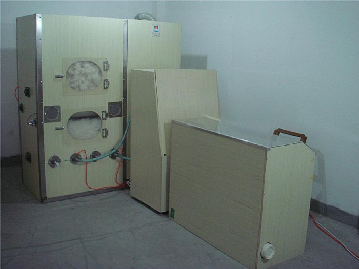1 本機用于羽絨服裝,羽絨被等制品的電腦自動計量充絨。 2 采用美國高精度電子秤,重量顯示精度可達0.1克。 3 一臺機器可以有兩個充絨口,可以同時供給兩個工人分別使用。充絨速度快、勞動生產率高。一年多就可以收回投資成本。 4 充絨桌有玻璃罩和羽絨回收系統,可以儲備10公斤羽絨充絨。此外還有羽絨打包、換羽絨品種等多功能。 5 電腦可存儲服裝片程序數量200片。一般充絨工人不要熟練期,就可以快速準確地充絨了,就像使用傻瓜照相機一樣。 6還有羽絨除雜質系統,除鐵除雜質,可以提高羽絨的品質。 7 專利號201120078780.3。目前,全世界的自動充絨機都在仿造我們的主結構系統。 8 精心設計,適合任何環境溫度條件下充絨。 9 采用德國洛爾西LORCH羽絨設備公司技術,機器用實木家具板材制造。強度高,密封好,振動小,噪音低,重量輕,衛生環保。 10 用壓縮空氣填充羽絨服裝,壓縮空氣壓力8公斤/平方厘米,空氣壓縮機功率大約3千瓦,省電。壓縮空氣源由用戶自備。 11 總裝機容量1.5千瓦,220V。 12 結構緊湊,占地面積小。長×寬×高 =2.8×1.7×1.9米, 13 我們運送機器上門、安裝調試、教授使用、培訓維修,保修一年,永遠服務