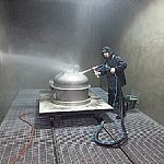 箱式噴砂機是將噴砂系統與箱體防護組合到一起,將噴砂空間控制在一個范圍里,實現沒有粉塵外泄的噴砂狀態。