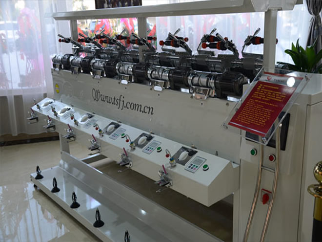 機器用途: TS008電腦型高速倒紗上硅油絡筒機,專用于(化纖、腈綸、長絲、低彈絲、丙綸,錦綸)過油卷繞成圓錐形或柱形筒子,供下道工藝使用,成形較好,工作效力高,無塌邊現象,TS008型自動高速機能減輕下道工藝的勞動強度,適應高速生產。 | 緊式絡筒 | | 1、卷繞驅動:每錠單獨驅動,變頻調速;4、筒紗直徑和動程:直徑≤290mm。動程為150mm;2、卷繞速度及密度:300-1000米/分鐘;5、具有單錠計長功能;3、具有電子斷紗自停功能;6、先進的觸摸屏式人機界面。 | | 筒管規格 | 6"(170mm) | | 結構 | 雙面機,每臺(12-96)錠 | | 電源 | 三相380V 50/60HZ | | 驅動 | 單錠獨立交流馬達驅動 | | 消耗功率 | 0.09千瓦/錠 | | 成型筒子 | 圓形柱(0°)/錐形;4°20, 5°57, 9°15 cone | | 筒子直徑 | 最大200和290毫米 | | 紗線速度范圍 | 300-1000m/min | | 電子防重疊裝置 | 變頻器控制 | | 定長裝置 | 可編程控制器(PLC)集中控制/顯示計長 | | 張力器 | 每錠配置旋轉自清潔張力器和上臘 | | 機械清紗裝置 | 每錠配置可微調機械清紗刀 | | 斷紗自停裝置 | 電子斷紗自停 | | 調速裝置 | 變頻調速 | | 筒紗軟邊橫動裝置 | 機械式/適合松式 | | 電子式清紗裝置 | 可選配 | | 空氣捻接器 | 可選配 | | 吹吸風清潔器 | 可選配 | | 照明系統(帶燈) | 可選配 | | 外形尺寸(毫米) | 13700(長)×1050(寬)×1650(高)mm |