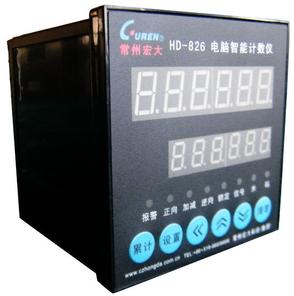 一、性能概述 HD-826型智能計數(shù)器幾乎涵蓋了工業(yè)生產(chǎn)的全部計數(shù)要求功能,是我公司積二十年經(jīng)驗之大成。選用美國FLASH MCU為核心器件,高集成化,高效性。具有抗干擾能力強,測量精度高,功能完備,操作簡便,通用性強等特點,可廣泛應(yīng)用于在線或離線的產(chǎn)品計數(shù),計長(如塑料、電線電纜、棉紗,布匹,線材等)控制,廣泛用于產(chǎn)量計數(shù)、流量計數(shù)、自動包裝機械、轉(zhuǎn)速、長度、沖壓次數(shù)計數(shù)等所有需要計數(shù)的場合,備受用戶青睞。 二、型號說明  三、技術(shù)參數(shù) 1、電源電壓:AC100~240VA 50/60Hz 2、信號輸入:可選擇,無源開關(guān)信號或邏輯電平輸入。 邏輯電平輸入:輸入阻抗5.4KΩ,有效低電平(L):0~2VDC,有效高電平(H):5~30VDC。無源開關(guān)信號輸入:觸點短路阻抗最大1 KΩ,開路阻抗最小100 KΩ,殘留電壓最大2VDC。 3、最高脈沖輸入頻率:10KHz 4、計長范圍:0~999999米/碼 5、計數(shù)范圍:0~999.999千圈(千次、千周) 6、導(dǎo)布輥(羅拉或轉(zhuǎn)軸)直徑范圍:Φ0.1~999.9毫米(用戶任意設(shè)定) 7、功耗:<3W 8、觸點輸出容量:AC250V、5A 四、主要功能 1、雙排六位數(shù)碼顯示,可同時顯示當前值和累計值; 2、多種傳感器輸入類型:霍爾傳感器,接近開關(guān),光電編碼器等; 3、多種計數(shù)方式:正向加法計數(shù),逆向減法計數(shù),雙向計數(shù)方式; 4、多種計數(shù)模式:定長計數(shù),累計計數(shù); 5、掉電保持功能:可實現(xiàn)當前值和累計值保存,保存期:10年; 6、多種顯示方式:米顯示,碼顯示,定長顯示,累計值顯示; 7、多種報警輸出方式:定長控制輸出功能,多種繼電器控制輸出模式; 8、多做計數(shù)復(fù)位模式:可實現(xiàn)手動、自動清零功能; 9、可實現(xiàn)當前值清零和當前值清零累計功能; 10、參數(shù)所存功能,多種安裝結(jié)構(gòu)件選配,滿足多種使用場合。