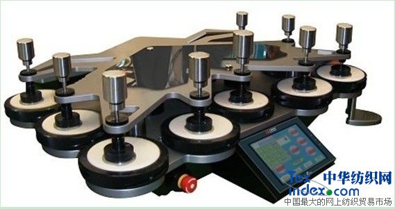 模式三:圓形織物試樣在一定的壓力下,與標準磨料按直線的運動軌跡進行互相磨擦,導致試樣破損,以試樣破損的耐磨次數表示織物的耐磨性能。該原理對應于標準規定的織物耐磨性能試驗。(100mm) 【儀器特性】: ◆ 設有三種模式運動軌跡: 模式一、包絡面為60×60mm李沙茹(Lissajous)圖形軌跡 模式二、包絡面為40×40mm李沙茹(Lissajous)圖形軌跡 模式三、動程100mm的直線運動軌跡 ◆ 可預置存儲9套自編輯程序,自由調用,可重復運行單一程序,3種測試模式,并配置夾持器與磨臺相對運動速度可調系統:20-70r/min可調 ◆ 中英文操作界面自由互切 ◆ 9工位設計,配置優質不銹鋼滾柱軸套,極大地降低了機械摩擦,避免長時間機械磨損所導致的組件重量降低而使得測試結果不準確,且減少噪音 ◆ 采用7寸800*480分辨率彩色觸摸屏控制,配置累加、累減兩種計數方式,每個工位均可以單獨計時控制,具有自動記憶功能,停機停電后可繼續上次測試 ◆ 儀器蓋板、重錘、夾持環、磨頭等位置均采用優質不銹鋼材質精工制成,不變形,不生銹,巧妙式蓋板結構設計,無需搬動蓋板即可輕松裝卸試樣 ◆ 采用高效無碳刷伺服直流電機驅動,噪音小,功率小,降低了能耗并提高了實驗室靜音效果 ◆ 法國原裝可編程序控制器(PLC)模塊化控制,抗干擾更強,不易死機 ,適合長達幾十萬次長時間運行 ◆ 用戶方可以另外選配鞋材測試活動樣式試樣壓重套裝組件,需提前預定 【技術參數】: 1. 工位數 : 9位 臺式 2. 計數顯示: a.預計計數: 0~999999次 b.累計計數: 0~999999次 3. 最大動程: 24±0.5mm 、60.5±0.5mm 4. 加壓物質量: a.夾持器: 200±1g b.衣料試樣重錘 : 395±2g c.家具裝飾品試樣重錘 :594±2g d.不銹鋼蝶片: 260±1g 5. 磨塊有效摩擦直徑 : A型 200g(1.96N)摩擦頭(9KPa) ¢ 28.8 -0.084mm、 B型 155g(1.52N)摩擦頭(12KPa) ¢ 90 -0.10mm 6. 夾持器與磨臺相對運動速度:20-70r/min可調 7. 裝樣壓錘質量: 2385±10g 8. 外形尺寸: 898×780×350mm (L×W×H) 9. 重 量: 100kg 10.電 源: Ac220V 50Hz 600W