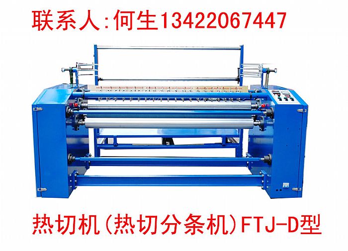 電熱切分條機(FTJ-D)的用途與特點:錦田機械有限公司最新研發生產的分體式FTJ-D型熱切分條機。別名:熱切捆條機、熱切機、斜紋熱切機、電熱分條機、熱分切機、熱分條機、熱切條機、電熱切邊分條機、熱切布條機、電熱分切機。操作簡單,是多刀型排刀分切。主要具有如下特點: 1、分切尺寸調整方便快捷。分切寬度可根據需要在最小分切寬度的基礎上任意調節。 2、獨有的進刀自動開機及退刀自動停機功能均為全自動控制。人性化的后置直放式排刀結構,使切布過程中熱量對操作人員的影響減到最低。 3、采用單一電子恒溫控制系統控制切刀加熱,從而提高節能效果。并使所有熱切刀的溫度絕對一致,大大提高布邊的封邊效果。 4、電熱切分條機采用獨立分體式的紅外線自動對邊(糾偏)放布系統,使分切過程平滑順暢,布料更整齊,大幅減少邊料的損耗。對于散布的分切尤其有優勢。 5、熱切機所用的熱切刀采用合金鋼經過特殊工藝加工制成,使用壽命得到大幅度提高。在分切的同時,利用溫度將布料的毛邊封住。使布料沒有毛邊產生。并不留布焦。 熱切分條機適用于所有化纖布,如:絳綸、尼龍、帳蓬布、雨傘布、雪紗、色丁布、45度斜紋布、土工布、無紡布、雪紡、南韓紗、歐根紗、床墊布、窗簾布、塑料編織布及其他朔料編織物等的裁切。廣泛應用在花邊生產、服裝加工、電腦繡花、包裝、彩旗制作、禮品飾品、包邊條生產、裝飾輔料類等行業的材料的裁切。 熱切分條機功能參數: 熱切分條機FTJ-D:電壓:220V。功率1.5--12KW。最大分切寬幅:1600mm。最小分切寬幅:10mm。機器尺寸:長*寬*高 260*120*130cm。全機重量:1600公斤。最大放料直徑:400mm。最大收料直徑 :400mm。生產速度:0--40米/分鐘。 最大分切寬幅及收放料直徑,可根根客戶需求訂做。,現有機型有:FTJ-A850,FTJ-B、D1600,FTJ-B、 D1800.機器保修一年.