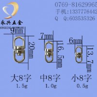 合金扣,又名鋅合金扣,狗扣,狗子扣,狗仔扣,勾扣,箱包扣,寵物扣,繩帶扣,吊牌扣,標(biāo)識扣,鑰匙扣,鑰匙扣配件,匙扣配件。永興五金制品廠自主開發(fā)生產(chǎn)的合金扣有幾十種,品種豐富,款式新穎,工藝精良,質(zhì)量上乘。本廠生產(chǎn)的鋅合金扣雞眼平整,電鍍光滑(無麻點,劃痕,起泡等現(xiàn)象)、彈力十足,比同產(chǎn)品重,廣泛適用于玩具、箱包、手袋、服飾、飾品、禮品、燈飾、文具、家具、電子、首飾、鞋帽、精品、工藝品等產(chǎn)品。由于本廠產(chǎn)品均由自己生產(chǎn),自己電鍍,我們能夠最大限度的保證產(chǎn)品的質(zhì)量,加快出貨速度,同時也避免了給別人電鍍帶來的附加成本,本廠是追求質(zhì)量優(yōu)良,供貨快速的客戶首選供應(yīng)商,歡迎各商家人來電咨詢,來人選購。 本產(chǎn)品優(yōu)勢:專業(yè)電鍍、質(zhì)量保證、廠價直銷、交貨迅速(有大量存貨,訂做一般4天即可交貨) (注:本廠產(chǎn)品有SGS檢測報告,歡迎登陸本公司網(wǎng)站查看或來電索要)