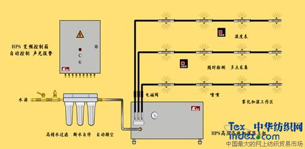 該機(jī)是機(jī)電一體化智能產(chǎn)品,系統(tǒng)由主機(jī)、噴霧系統(tǒng)、高壓水管路系統(tǒng)、檢測(cè)控制系統(tǒng)四部分組成。主機(jī)通過(guò)控制系統(tǒng)按設(shè)定的溫濕度進(jìn)行自動(dòng)控制,檢測(cè)的濕度和溫度顯示在主機(jī)顯屏上、設(shè)備可供多個(gè)車間或多個(gè)點(diǎn)不同的工藝要求設(shè)置不同的溫濕度,實(shí)現(xiàn)多點(diǎn)控制一體化,噴頭采用組合式分布,可在任意點(diǎn)安裝,噴灑霧化效果好,霧粒分布均勻,漂移損失小。