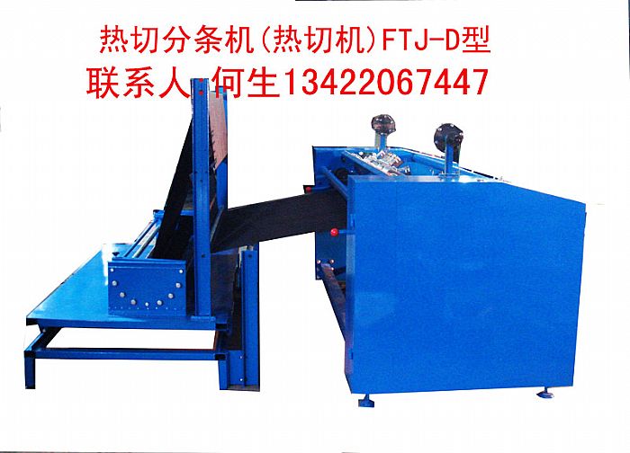 熱切機用途與特點: 錦田機械生產的熱切分條機(熱切捆條機、熱切機、熱切條機、切布機、電熱分條機、熱分切機、熱分條機、電熱分切機)操作簡單,是多刀型排刀分切.是在以前的機型上進行全面的技術改造而誕生的新一代機型,在功能上及易操控性都得到了極大的提高。 本機采用變頻調速系統代替過去的電磁調速,使送料過程更加平穩均勻,可根據不同產品調節合適分切速度,而且更節能。采用獨立的光電自動對邊儀,使分切過程平滑順暢,布料更整齊,大幅減少邊料的損耗。經過特殊處理的刀床,有效的防止刀床滾輪過熱而變形,可以連續長時間不間斷工作,極大地提高了工作效率、機械的耐用性以及它的使用壽命。新增加的自動進、退刀功能,切完布料后自動停機等功能,大大提高了可操作性。 熱切機所用的熱切刀采用鎢鋼合金經過特殊工藝加工制成,使用壽命得到大幅度提高。在分切的同時,利用溫度將布料的毛邊封住。使布料完全沒有毛邊產生,并不留布焦。熱切機適用于化纖布、帳蓬布、雨傘布、朔編布、土工布、無紡布、雪紡、色丁、歐根紗、南韓紗、塑料編織物等的裁切。  產品廣泛應用于紡織、服裝、包裝、輔料等行業。 功能參數:電壓:220V。功率:10kw。全機重量:1500 kg。最大分切寬度:1600 mm 最小分切寬度:10mm。全機尺寸:2400×1200×1700mm。生產速度:20-70米/分。 注:機器保修一年。 最大分切寬幅可訂做,現有機型有:FTJ-A850,FTJ-B1600,FTJ-D1600,FTJ-D1800.
