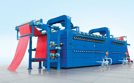 詳細介紹: 一、概述 該機是在消化吸收門富士樣機的基礎上,研發的新型預烘焙烘機,與傳統的焙烘機相比,有許多優點。 1. 配置靈活:積木式組合設計,串聯或疊加式組合時,既可預烘,又可焙烘,并實現了熱風房小循環,節約能源。 2. 靜壓設計:熱風經過靜壓箱后,上下風嘴噴風均勻,保證了織物受熱一致,避免了色差的產生。 3. 結構獨特:為消除輥體高溫熱漲彎曲,機內導布輥軸端均采用新穎的熱伸彈性裝置,浮動支承在定位板內,上排導輥碟形彈簧摩擦副傳動,保持導輥良好的運行狀態和均勻的織物張力,不易產生起皺隱條現象。 二、產品用途 本機用于純棉、化纖及其混紡織物浸軋分散、士林、印地科素等染液后,進行預烘、焙烘之用。 三、主要規格 1. 車別:左手或右手。 2. 車速:35 ~ 70m/min。 3. 公稱寬度:1800mm。 4. 熱源:電加熱、導熱油、燃氣 5. 烘房容布量:A型:20m ;B型:34m;C型:48m;本機容布量由二室C型組合48X2=96m 6. 烘房溫度: 焙烘溫度:160 ~ 220℃。 7. 傳動方式:獨家研制的JF/MC型織物張力控制技術,即摩擦副、變頻、力矩三位一體的線速度調節技術,電控變頻力矩與機械制動相結合,寬帶調節高密織物高溫傳送所需的微張力。 8. 外形尺寸(長×寬×高):A 型:2934×3450×3626 B 型:4050×3450×3626 C 型:5166×3450×3626 四、揚州瑞芃印染機械有限公司敬告客戶: 凡我公司制造的所有產品,不含以下件: 1、空壓站或空壓機 2、機外管路 3、埋人地下布走的電線管 4、烘房底層保溫磚